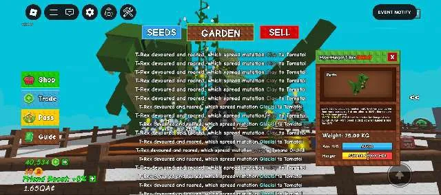 (15SEC CD )3x T-REX 74-75KG - GROW A GARDEN