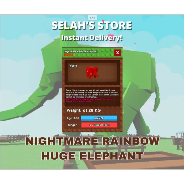 [CHEAPEST🔥] HUGE NIGHTMARE RAINBOW ELEPHANT | 61.28 KG | AGE 100 | VERY LIMITED DIVINE PET | GROW A GARDEN | FAST DELIVERY
