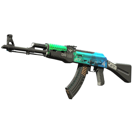 Powerful and reliable, the AK-47 is one of the most popular assault rifles in the world. It is most deadly in short, controlled bursts of fire. It has been custom painted with a vibrant green and blue gradient.