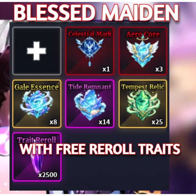 BLESSED MAIDEN ITEM BUNDLE + F Move + 2500 TRAIT REROLL -SAILOR PIECE