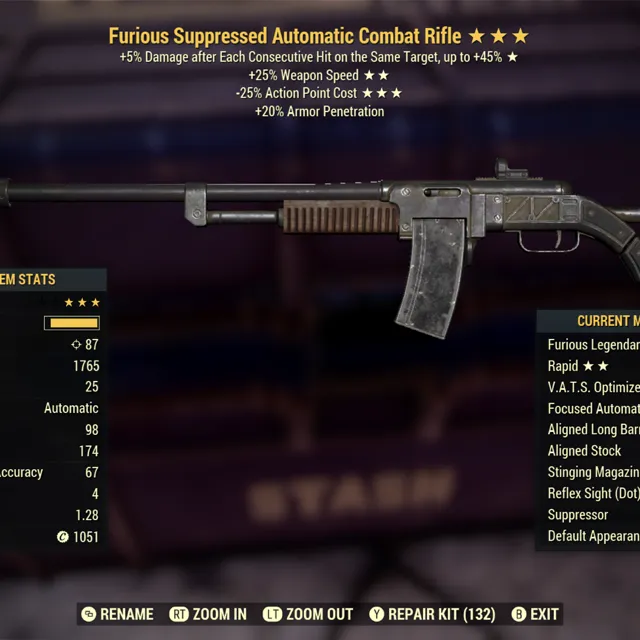 Type: Weapon. Furious, weapon speed, 35 less vats cost lvc combat rifle. Max level