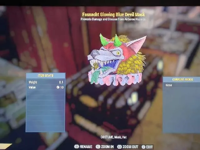 Glowing blue devil mask