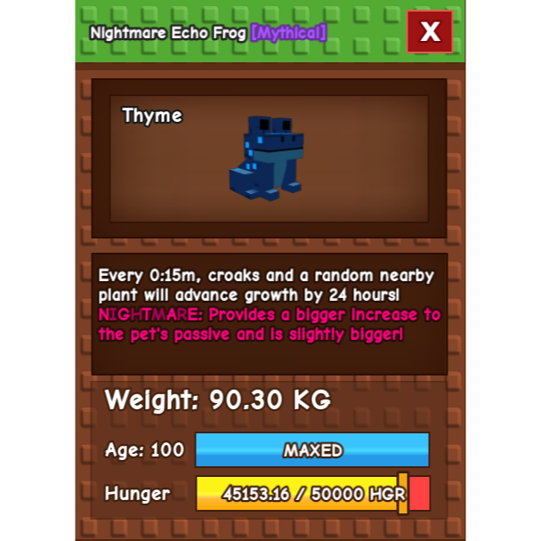 Grow a garden - GODLY/TITANIC NIGHTMARE Echo Frog 90kg
