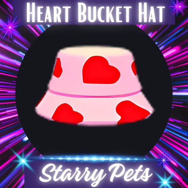 The Heart Bucket Hat is a limited common pet accessory in Adopt Me! that was released on November 9, 2023. No longer available in the game.