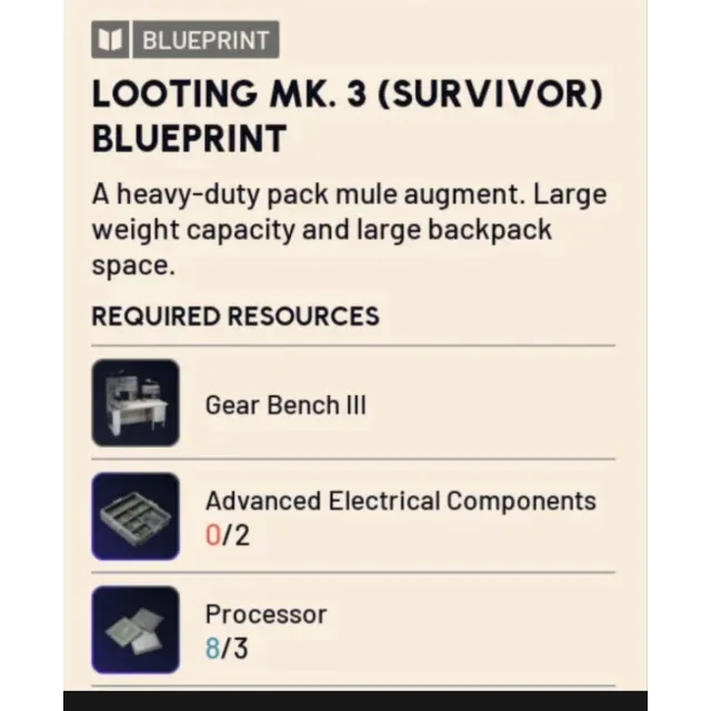 Looting mk3 survivor blueprint