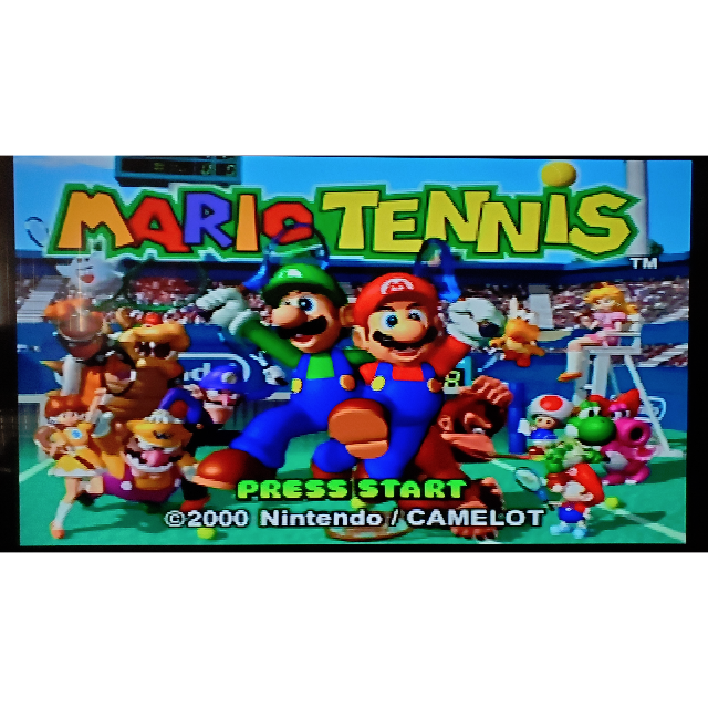All of your favorite characters hit the court in a wild and wacky multiplayer tennis game from the makers of Mario Golf. Mario, Luigi, Bowser, Peach, Toad, and Donkey Kong lead off the all-star, 14-player line-up. The fast-paced action will have you unleashing vicious volleys, life-saving lobs, ballistic backhands and electrifying super-charged smashes!