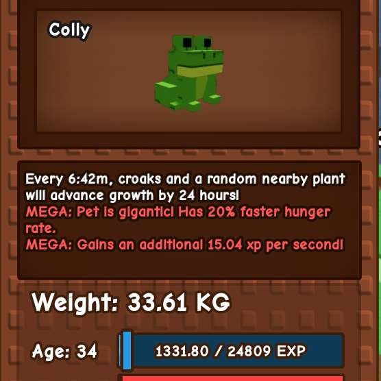 Type: Pet. Mega frog(33.61kg) age 34