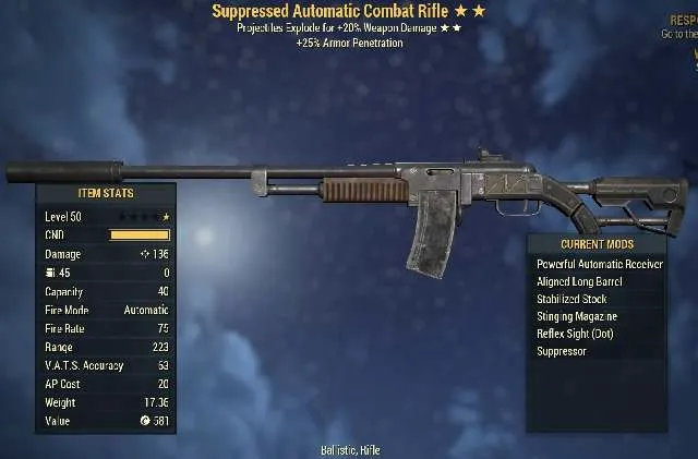 Missing Stars Weapon | LVL 50 | Combat Rifle |? -Explosive -? | Missing Effects