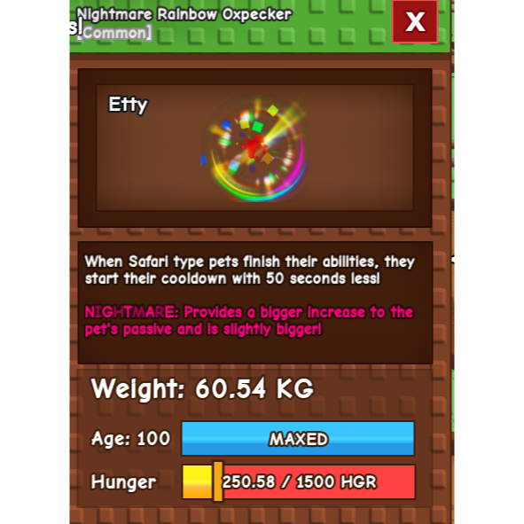 Nightmare Rainbow Oxpecker (60.54kg) (1pet)