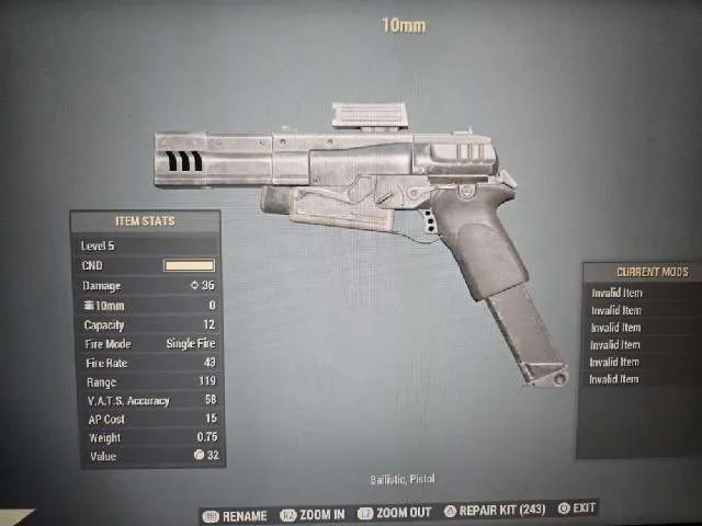 Legacy clean 10MM pistol 6/6 invalid slots