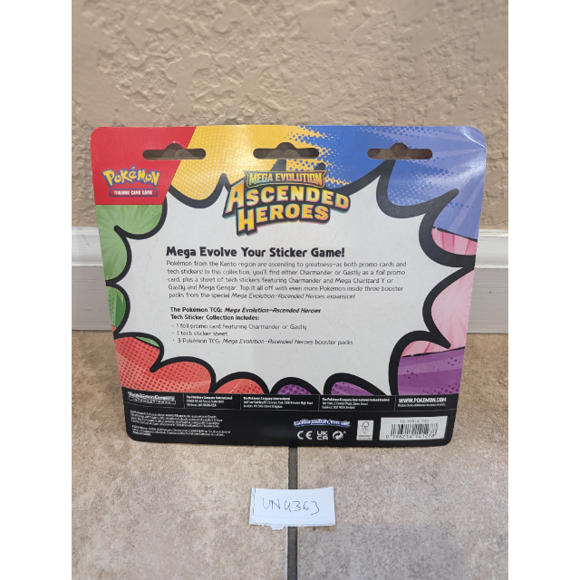 Mega Evolve Your Sticker Game! Pokémon from the Kanto region are ascending to greatness—as both promo cards and tech stickers! In this collection, you’ll find either Charmander or Gastly as a foil promo card, plus a sheet of tech stickers featuring Charmander and Mega Charizard Y or Gastly and Mega Gengar. Top it all off with even more Pokémon inside three booster packs from the special Mega Evolution—Ascended Heroes expansion!