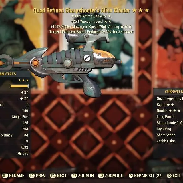 Quad faster fire rate faster movement speed while aiming Alien Blaster Max Level