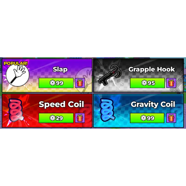 slap , grapple hook , speed coil , gravity coil - Find the Brainrot