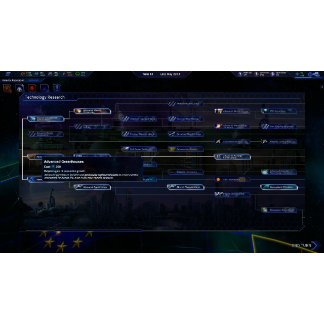In the future, there’s an even shinier future ahead. There are great discoveries to be made, and many things, great and less great, that you can do using those discoveries. To have a chance against your foes, you'll need to be one step ahead of them in technology too, and not just in strategy.