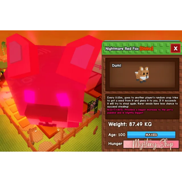 [LIMITED] Titanic Nightmare Redfox | Age: 100 | 87.49 kg | 15s cd | Unli seed steal | [FREE] 10SX Sheckles Non-Duped | Fast and Clean! |