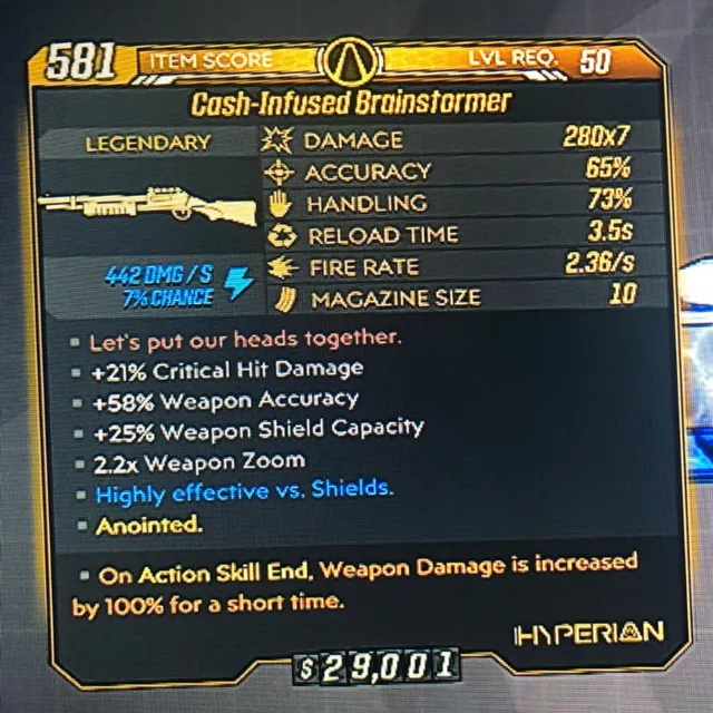 GODROLL BRAINSTORMER ANOINTED Borderlands 3