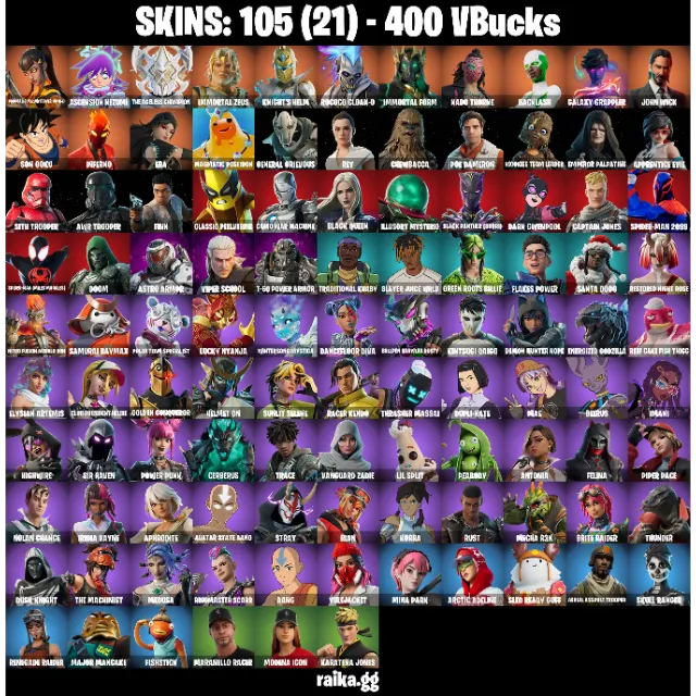 Cuenta de juego🎮 Fortnite Account — 105 Skins | Galaxy Grappler, John Wick, Son Goku| 25 EX | 400 VB | FA ✅
