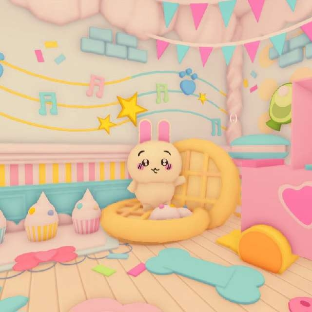 Decorated with a wide variety of sweets such as cupcakes 🧁, ice cream 🍦, mochi 🍡, macarons 🍬, pancakes 🥞, cookies 🍪, sprinkles ✨, and candies 🍭, along with multiple cute and colorful wall art designs 🖼️