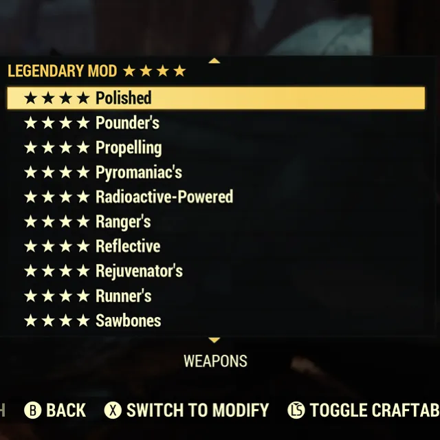 Fallout 76 Xbox one / Choose any Four Star Mod. I’ve listed all of the available four star mod options below.