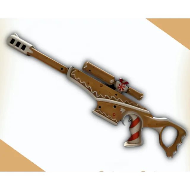 It resembles a tactical sniper rifle made entirely of gingerbread, along with a scope attachment on it on the top, hence the name. The gingerbread is decorated with faint white icing and small pieces of candy along the viewer, body and wedge. The handle is made of red and white striped peppermint, and on the middle of the scope is a small peppermint infused on it.