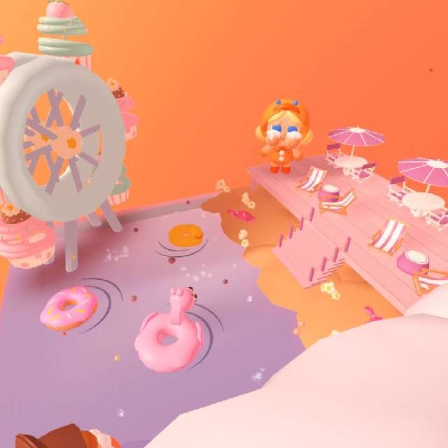 ✔️ A pool, cupcake ferris wheel, and benches on the back