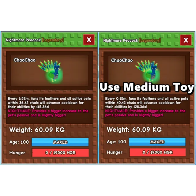 Nightmare Peacock Age 100 Weight 60kg ++ Ability Cooldown 15 Second Using Medium Toy