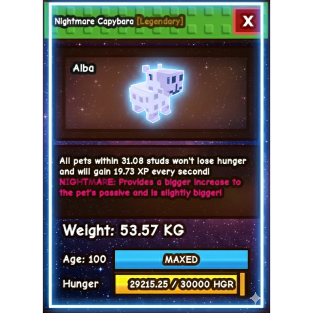 NIGHTMARE TITAN CAPYBARA (53.57 KG) // GIVES PET 20 XP PER SECOND!