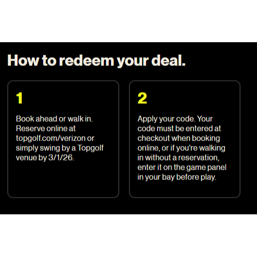 code for one hour of topgolf. you can also apply to longer reservation too. its for golf bay use only food and drinks and other fees not included. exp 3/1/26