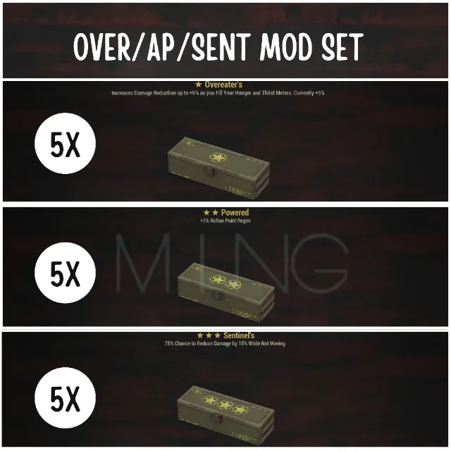 OVER AP SENT LEGENDARY MOD SET INCLUDES: