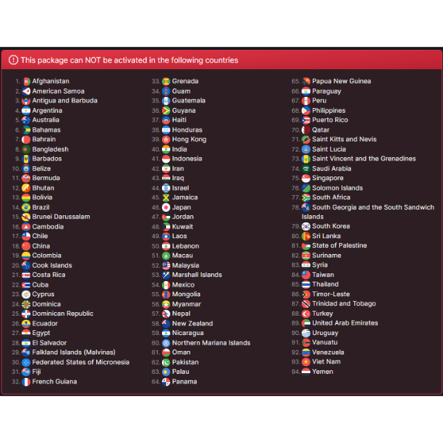This game can NOT be activated in the following countries: https://steamdb.info/sub/1368419/