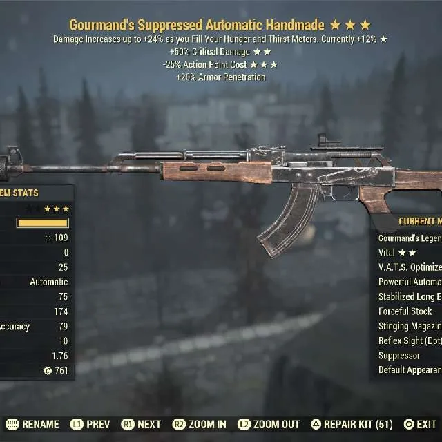 Gourmand's 50 crit damage 25 less vats cost Handmade Max Level