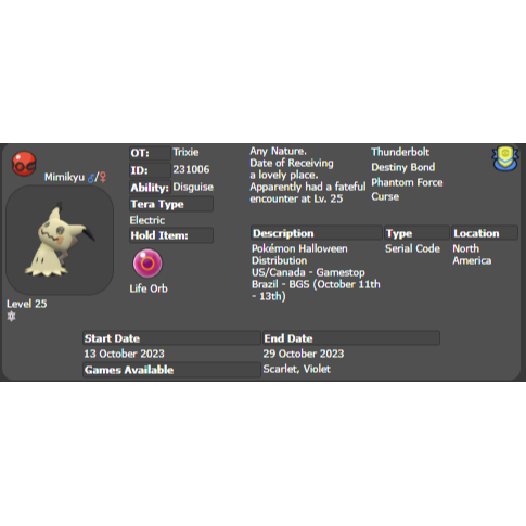 2023 Electric Tera Trixie's Mimikyu Event | Pokémon Scarlet & Violet| Untouched