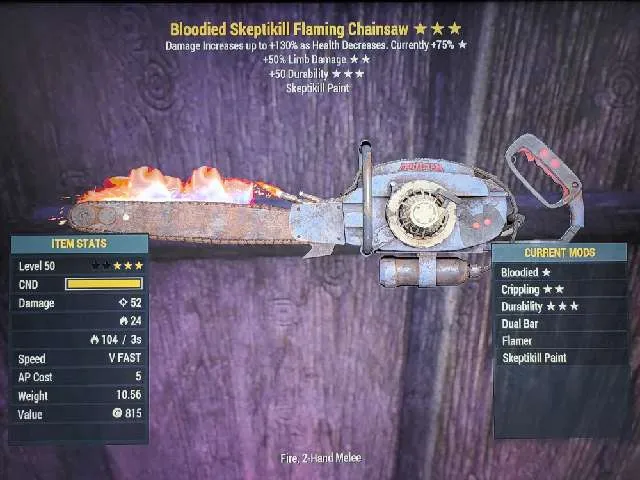 1x Bloodied Skeptikill Flaming Chainsaw Weapon