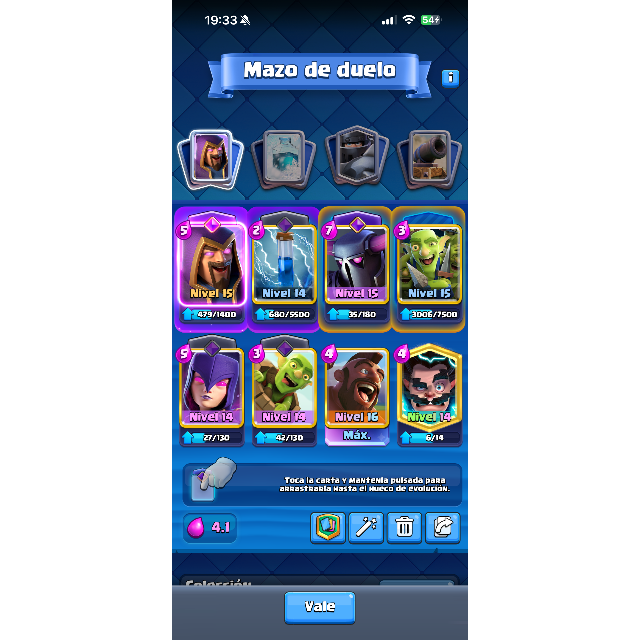 Dispone de más de 2.200.000 de oro y 1.800 gemas, proporcionando amplios recursos para seguir mejorando cartas, comprar ofertas o participar en eventos. La cuenta está completamente desarrollada y optimizada, con gran potencial competitivo tanto en ladder como en desafíos y guerras de clanes.