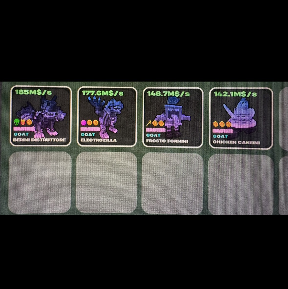 Bundle 4 high earning brainrots and 4 top fruits.
