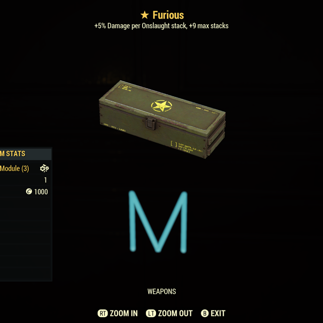 Fallout 76 Xbox one / 5 Furious one Star weapon mods.