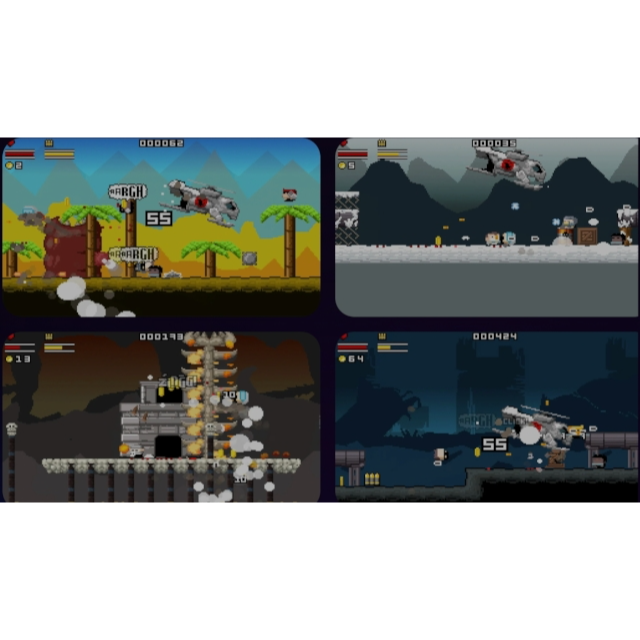 The world is on the brink of chaos, and only the Gunslugs stand between order and total destruction! The evil Black Duck Army has unleashed its forces, armed with high-tech weaponry and a legion of relentless foot soldiers. Your mission? Blast, jump, and survive through a non-stop barrage of mayhem, traversing plane yards, jungles, frozen wastelands, ancient tombs, and even the fiery depths of Hell itself.