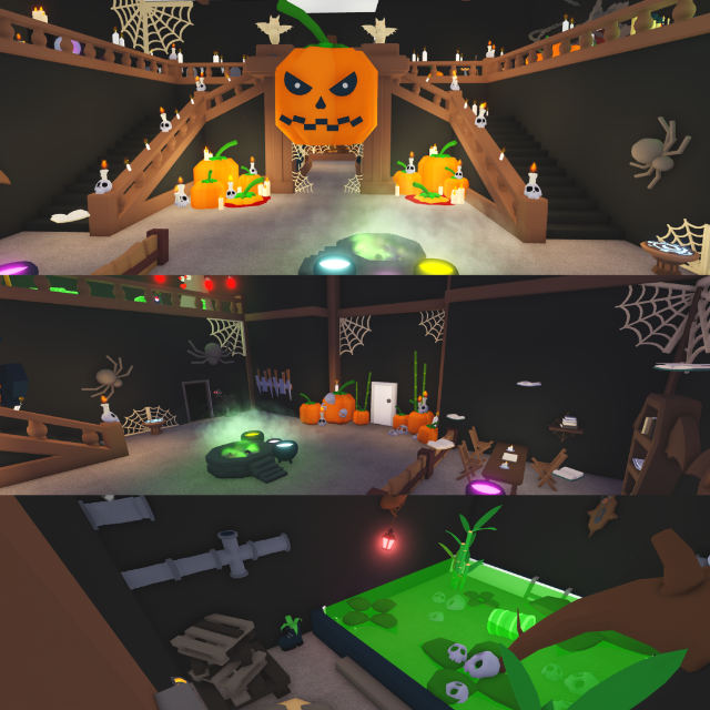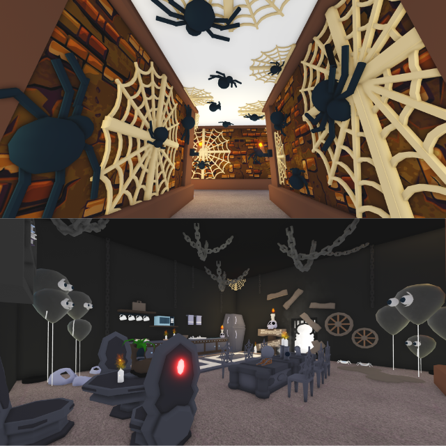 Haunted House (Super Decorated Halloween) on Adopt me! It has spiders, ghosts, skeletons and more. Adopt me house build.