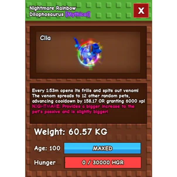 HUGE RAINBOW HATCHED DILO WITH NIGHTMARE MUTATION . GROW A GARDEN