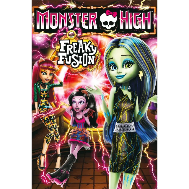 While attempting to help Frankie Stein learn more about her freakycool scaritage, the fashionably fierce ghoulfriends travel back in time to the first day ever of Monster High! There, they meet Sparky, a skullastic teen with an obsession for creating life. But when Sparky follows the ghouls through a killer time portal to modern-day Monster High, the event results in eight of them fusing together into four creeperiffic hybrid Monsters. Now, they'll really have to work together to control their bodies in the big Bitecentennial Play and stop one of Sparky's experiments from destroying imperfectly perfect Monster High!
