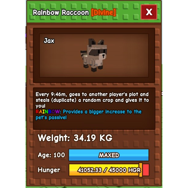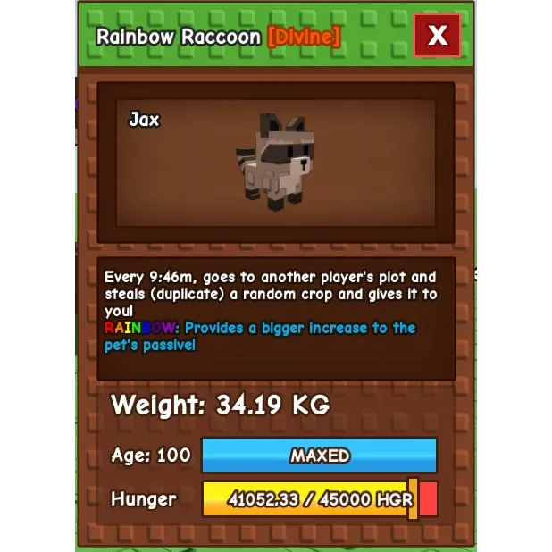 Rainbow raccoon (34.20 kg max)
