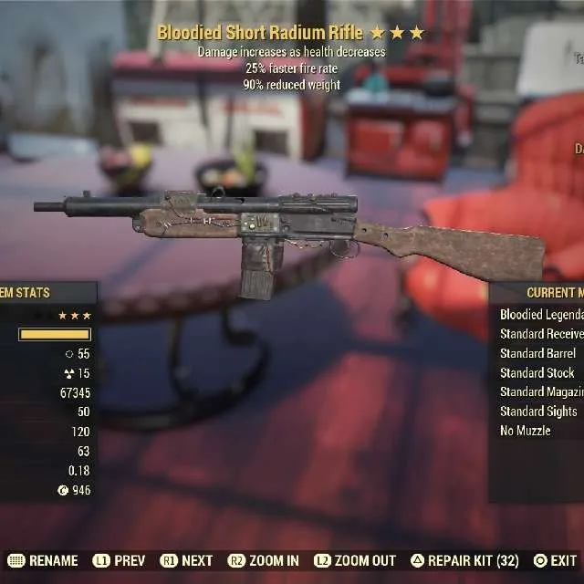 Bloodied faster fire rate 90 reduced weight Radium Max Level