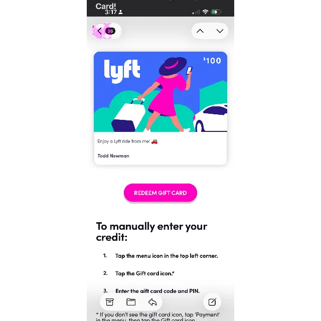 exactly what it says it is $100 gift card to Lyft.