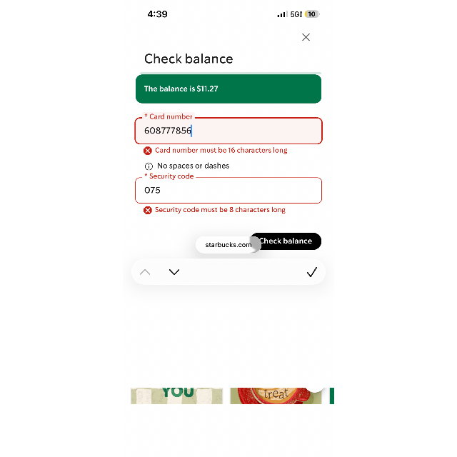 $11.27 USD Starbucks