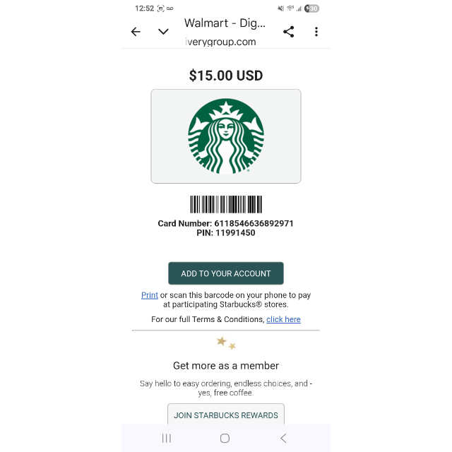 Starbucks $15 egift