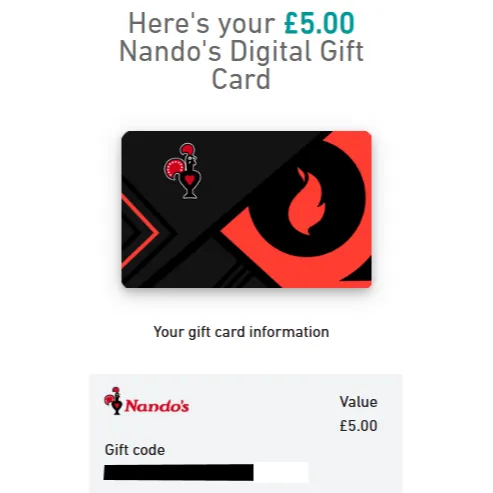 £5.00 GBP Nando's Digital Gift Card UK