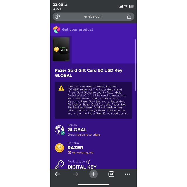 $50 USD razer gold gift card!!
