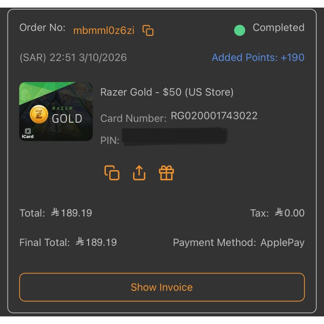 Source: This card was purchased legally through the iCard application. A digital receipt/proof of purchase is available if needed for verification.