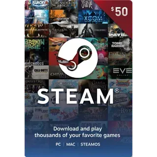 Steam $50 USD Gift card. Instant digital delivery.