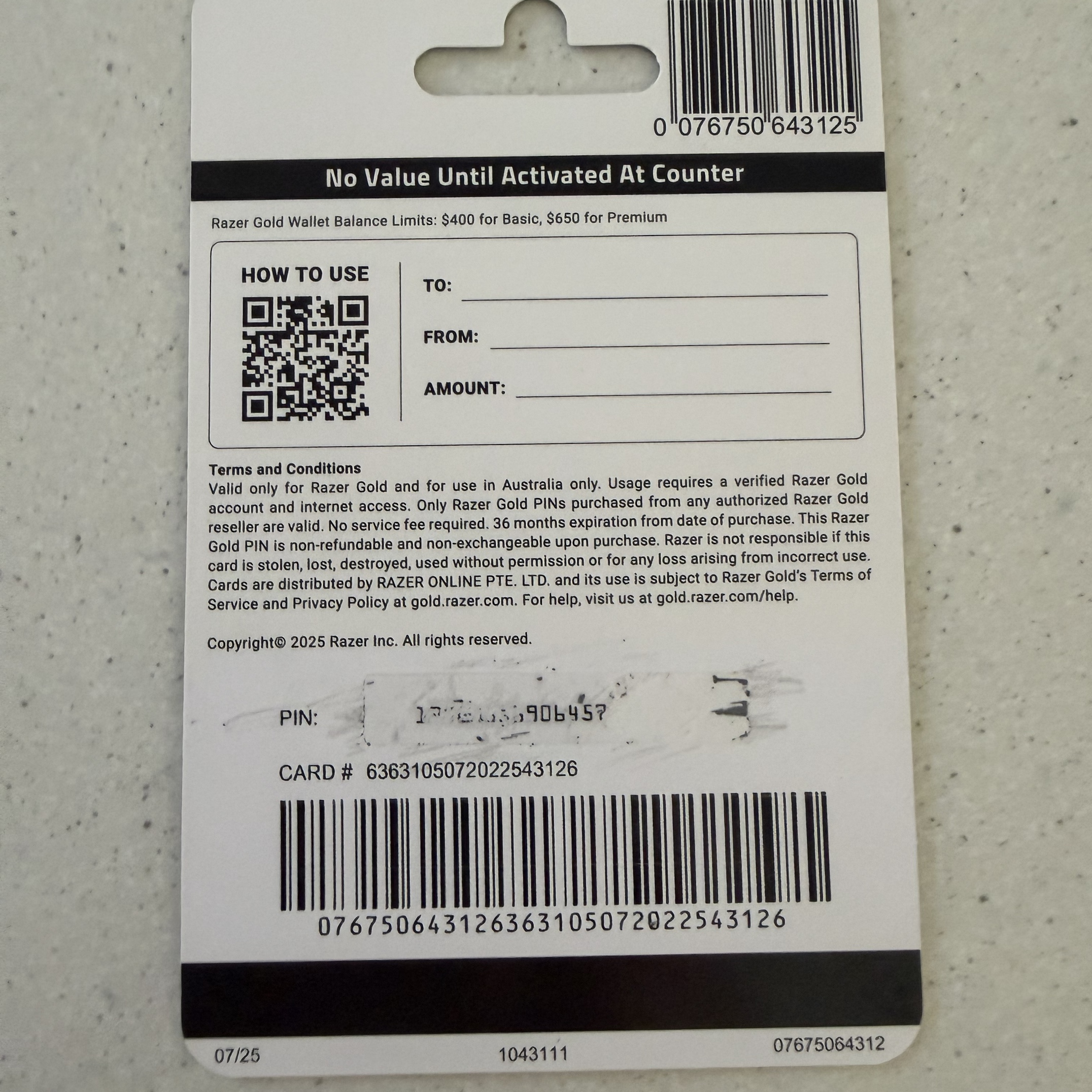 $500 Razer Gold gift card 500 Australian dollars